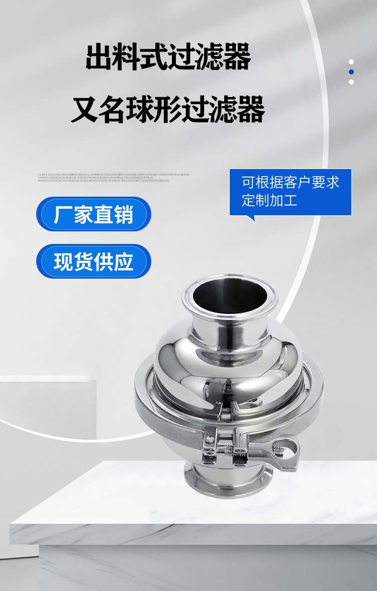 - 304不锈钢快装球形过滤器卫生级出料口直通过滤
